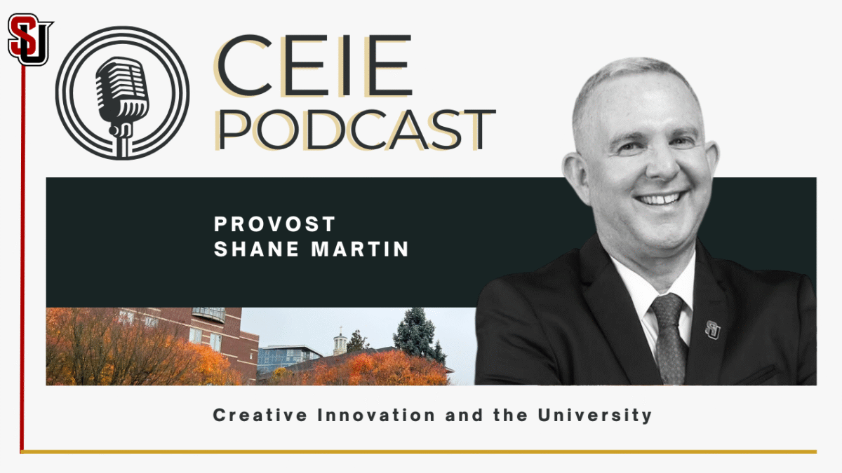 CEIE Founding Director and Spehar-Halligan Professor, Dr. Michael Reid Trice interviews Seattle University Provost, Dr. Shane Martin, about the essential nature of creative innovation for the university, for society, and for our lives. The world requires a new evolution on how we develop ideas across disciplines, how corporations team to find equitable solutions, and how we assemble the eureka moments that drive change in our lives for the betterment of all. Take a listen!